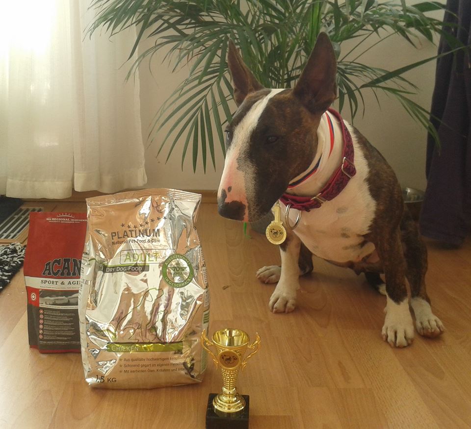 nejlepší fena PesFestu v agility v kategorii začátečníci Emotikona smile Dostala pěknou výslužku, medailičku + granulky za 1. místo v prvním běhu, v 2. běhu byla 2. takže pozornost od HuHu Bamboo a Dance&Jump a pohár a granulky za nejlepší fenu PesFestu